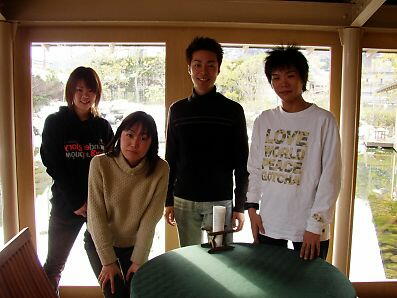 ホームページで見た豪華な部屋は期待しちゃいけない、と思いつつも、期待してしまう、この心。・・・そして通された部屋は、「ま、こんなもんだよね」という感じではあるが、まぁ悪くはない。前回の箱根の時に比べればかなりいい。ベランダからは、川を眺めることが出来る。ふと、前に建っているホテルを見上げると、おやおや????・・・じいさんが服を脱ぎだしている。なんじゃ、これ?・・・脱衣所だった。窓際で着替えをしていると、もうこちらから丸見えである。 一度座ってしまうと、なかなか動けなくなる一同。のんびりダラダラしていたのだが、どうも部屋が寒い。備え付けの暖房は、エアコンというよりは「空気清浄機」かと思わせるような代物で、小型のヒーターはあまり暖かくない。寒いぞ。普通、旅館の部屋ってぬくぬくと暖かいはずではないか?!こりゃ風邪引いちまうぞ、てなわけで、もうひとつ小型ヒーターを持ってきてもらう。 これで暖かくなるだろう。よかったよかった。・・・と思っていた矢先、いきなり停電。一瞬の沈黙。一体、何が起きたんだ!?・・・なんだなんだ、もう〜・・・何事だ?!停電か?・・・それとも・・・お化けの仕業?!・・・早速フロントへ電話。部屋の中でブレーカーを探すも見つからない。廊下は電気がついている。部屋の中は、真っ暗、かつ寒い。なかなか来ない従業員。待っている間の暇つぶしに、懐中電灯を顔に当てて写真を撮りまくって「コワイ写真」に大盛り上がり(?)。やっと誰かが来てくれたかと思いきや、「ちょっと待って下さいね」と言い、どこかへと消える。また待たされる。部屋の中は、暗くて寒い。そしてやっと戻ってきたかと思いきや、今度は若いお兄さん。「ああ、ちょっと待って下さい」と言い、またも消える。「もう、電気つかないんだったら、別の“イイ”部屋に変えてよ〜」と誰かが漏らすホンネ。期待しちゃう一同。しかし神様は味方してくれることはなかった。すぐに電気がついて、お兄さんが舞い戻ってきた。やはり、暖房機器3つつけているのが問題だったらしいが、小型ヒーターを別のベランダ側のコンセントに差し込んで問題解決。部屋を移動することはなかった。そして、部屋に掛かっている絵の裏を見てみたが、何もなかった・・・。 気を取り直し、温泉へ。屋上の露天風呂は、木風呂に岩風呂にいろいろとある。外はかなり寒いが、お湯は温かく、なかなかだ。 体がしっかり暖まり、部屋に戻ってすぐに夕食へ。しっかし、廊下が寒い。一体なんじゃ、ここは。廊下が寒い旅館なんぞ初めて来たぞ!電気代の節約か? |