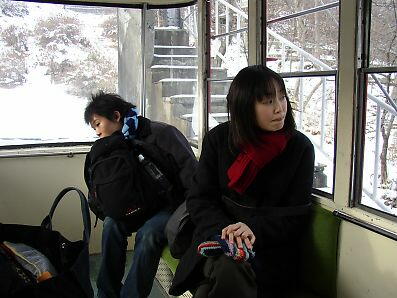 1月17日、いよいよ待ちに待った友人同士4人(男2人・女2人)での鬼怒川温泉旅行の日である。 朝9時50分、東武浅草駅に集合。前の夜、僕はライヴ音源の整理、他のメンバーは飲み会、部屋の掃除、洗濯やらで4人して寝不足状態である。大丈 夫か?!心なしか、あまりテンションは高くない。10時20分出発だが、10分程前から並ぶ。席を取る為だ。2時間40分、立ちっぱなしはキツイ。電車の 扉が開くと、もうオバサン根性丸出しかのように、中へ入っていく・・・が、そんなに頑張らなくても充分座れる程の混み具合だった。要はさして混んでい ない。 窓の外を眺めながらうつむいていると、「どうしたの?おとなしいゾ!」と突付かれる。突付かれては仕方ない。トーク炸裂タカハシコウになる。そして、 オリコンマニアの僕は、80年代アイドルの曲を何十曲も歌いながら、オリコンの順位を発表していく。・・・なんつー道中だ。 12時40分、鬼怒川温泉駅到着。・・・あれ?!閑散としている。・・・あれれ??全国的に有名な鬼怒川温泉、オフシーズンと言えどももっと賑わってい るんじゃないの?昨年9月の箱根旅行の時とは大違いだ。まずは、先日放送の「アド街っく天国」で紹介された、「水辺のカフェテラス」へと向かう。駅 の地図で確認すると、遠いような気がしたのだが、駅員に聞くと徒歩5分だと言う。では歩きましょう、ということで、てくてく歩き始める。うわっ!タクシ ーがわんさかと待っている。しかもかなり暇そうだ。「白タクに注意!」という看板があり、注意しなきゃね、なんて思っていた矢先、白タクの運ちゃんに 話し掛けられる。「何処行くの?観光しない?」と誘ってくる運ちゃん。着いた早々、何じゃココは。・・・駅員の言う通り、5分程歩くと目的地に着いた。メ ニューを見ると、思ったよりも大したことない。中に入れば、悠々と座れるスペース。オープンカフェだけあって、開放的だ。千円のランチと、名物の「抹 茶とココアが混ざった」飲み物を。味はどれもこれも普通だねぇ〜、そんなこと言わないのッ!・・・なんぞ言いながら、少しのんびりして次なる目的地、 ロープウェイへ。ここから歩いてどのくらいかかるか聞いたところ、「20分くらいかなぁ・・・いや、20分じゃきかない、30分くらいでしょう」と店員。 歩くか?駅に戻ってバスに乗るか?迷った挙句、歩くことに。すると、30分だなんてとんでもない、15分もしないうちに着いた。しかも、遠いと思われた 我らの「あさやホテル」も、ロープウェイのすぐ側にある。・・・案外鬼怒川温泉って、小さい?? |