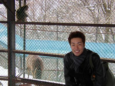 ロープウェイは往復900円(割引額)。乗るとすぐに着いてしまうような距離だ。(これが900円・・・?) しかも、客もほとんどおらず、従業員も暇そうで ある。上に着くと、猿と鹿が待っている。見張り役のおじいさん、表情ひとつ変えず陣地に座っているが、こちらもかなり暇そうだ。そして主役の猿と鹿 は、もくもくと食べ続けている。かと思いきや、猿はいきなりガサゴソと走り回る。ああ・・・落ち着かない。妙な匂いを発するその場所から早々と退散 し、展望台へ。ほう、これが鬼怒川か。ふむふむ。山だ。ああ川だ。おおっと、やはり「あさやホテル」はデカイぞ。 |
